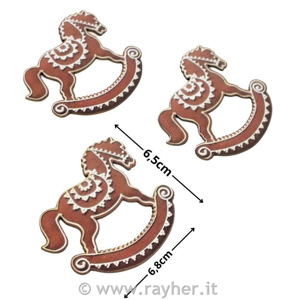Komplet vsebuje 3 ročno izdelane lesene okraske; gugalnik konjiček v "cookie" stilu, ki bo popestril vaše praznične dekoracije, voščila,..