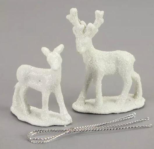 Jelenčka, par, bela, z dodatnimi bleščicami, ki sijajno odbijajo svetlobo in dodajajo glamur ter čarobnost v vaš prostor. Izdelana iz trdnih materialov, ki zagotavljajo dolgo življenjsko dobo dekoracije.