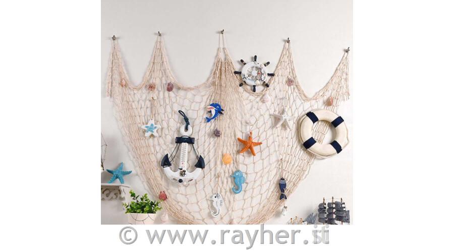 Okrasna ribiška mreža za kreativno ustvarjanje. Priporočljivo za dekoracijo razstavnih prostorov. Sezonski dekorativni element za poseben pridih vzdušja v prostoru.