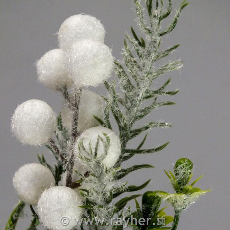 Zasnežena vejica z belimi bunkicami in jabolkom, 25cm