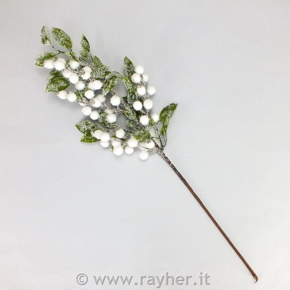 Elegantna dekorativna vejica z belimi jagodami in zelenimi listi, rahlo posuta s snežnim bleščicem, je popolna izbira za praznične aranžmaje, adventne venčke, zimske šopke in namizne dekoracije. Zaradi naravnega videza in nežnega “zasneženega” učinka ustvari pristno zimsko vzdušje v vašem domu.