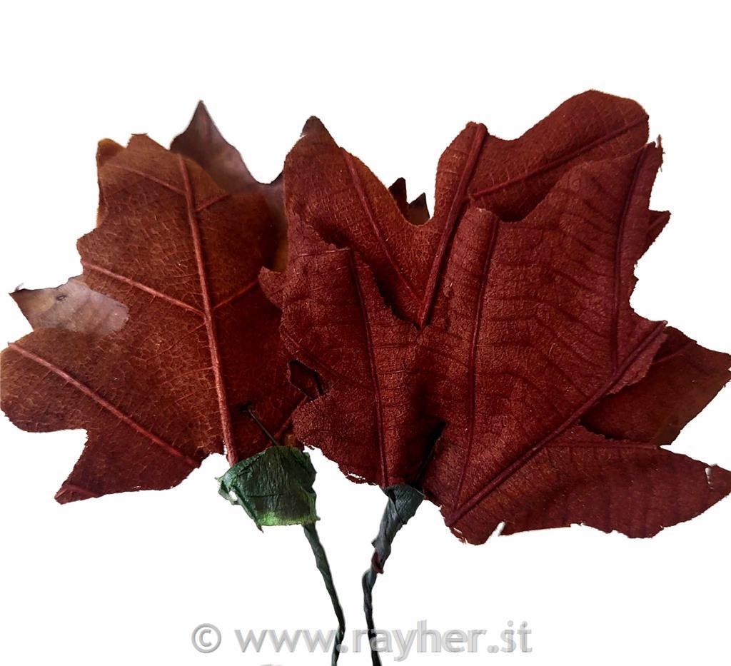 Il set contiene 6 foglie vellutate di colore marrone scuro, distribuite su due fili per una facile modellazione.