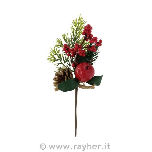 Vejica z rdečimi bunkicami, jabolk in storžem (bunkice so iz lahke mase in so svetleče) - 25cm.