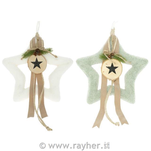 Zvezda odeta v plis ( bel ali svetlo moder) z lesenim diskom, trakovi in vrvico za obešanje je čudovita praznična dekoracija za vaš dom, pisarno,...