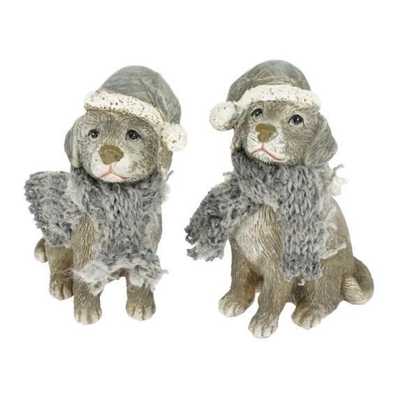 Kuža s šalom in kapo, sedeč, 7cm, 1kom