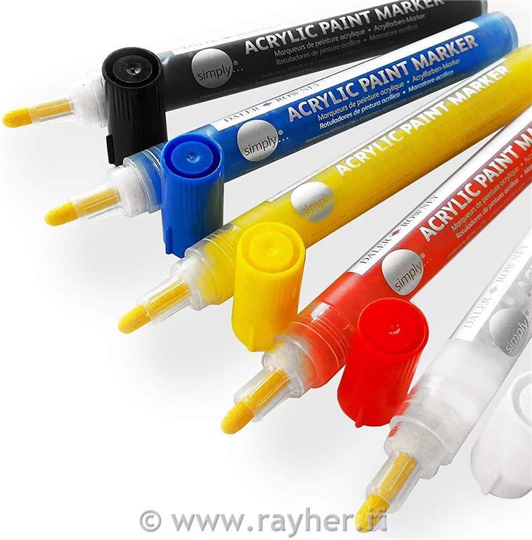 Akrilna barva v flomastrih je trajna in se hitro suši ter omogoča risanje, barvanje in pisanje brez lis.