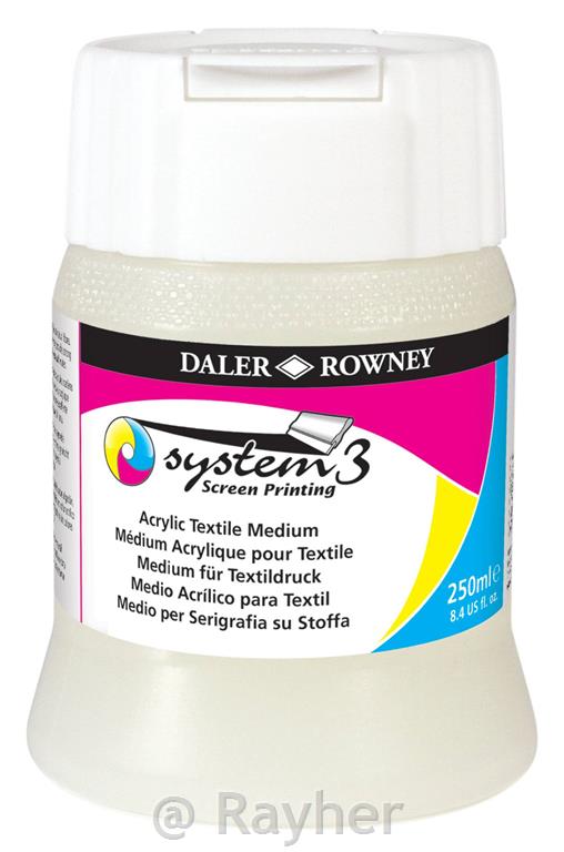 Formulato per l'uso con i colori acrilici System 3, questo medium serigrafico e progettato per combinarsi con la vernice acrilica per produrre un inchiostro serigrafico ideale per la stampa su tessuto. Il medium si adatta molto bene al cotone, ai tessuti misti, alla maggior parte delle fibre naturali, alla seta e ai materiali sintetici.