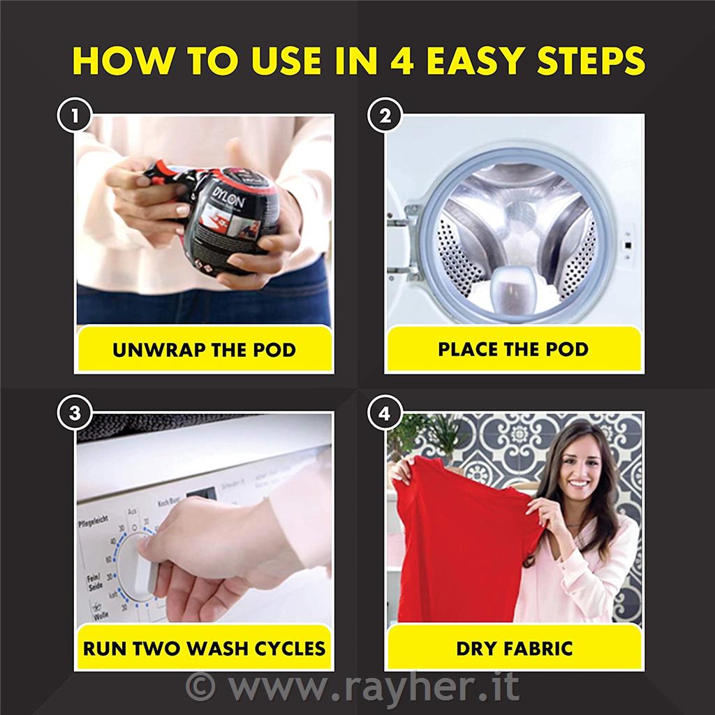Dylon barve z strojno pranje perila so najboljše barve za domače barvanje tekstila. Barve vsebujejo vse komponente in uporabnik ne potrebuje nobenih dodatnih sestavin (na primer soli). Uporaba je zelo enostavna; vlažne tkanine preprosto vstavimo v pralni boben, odstranimo tulec in pokrovček ter na tekstil položimo odprto embalažo barve. Tekstil lahko prebarvamo ali samo osvežimo barvo, ki je s časom obledela.