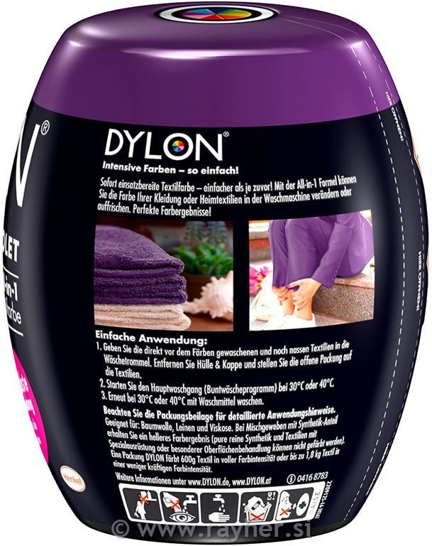 Dylon barve z strojno pranje perila so najboljše barve za domače barvanje tekstila. Barve vsebujejo vse komponente in uporabnik ne potrebuje nobenih dodatnih sestavin (na primer soli). Uporaba je zelo enostavna; vlažne tkanine preprosto vstavimo v pralni boben, odstranimo tulec in pokrovček ter na tekstil položimo odprto embalažo barve. Tekstil lahko prebarvamo ali samo osvežimo barvo, ki je s časom obledela.