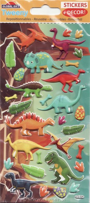 NALEPKE TWEENY Z OZADJEM, 9X17.5CM, DINOZAVRI