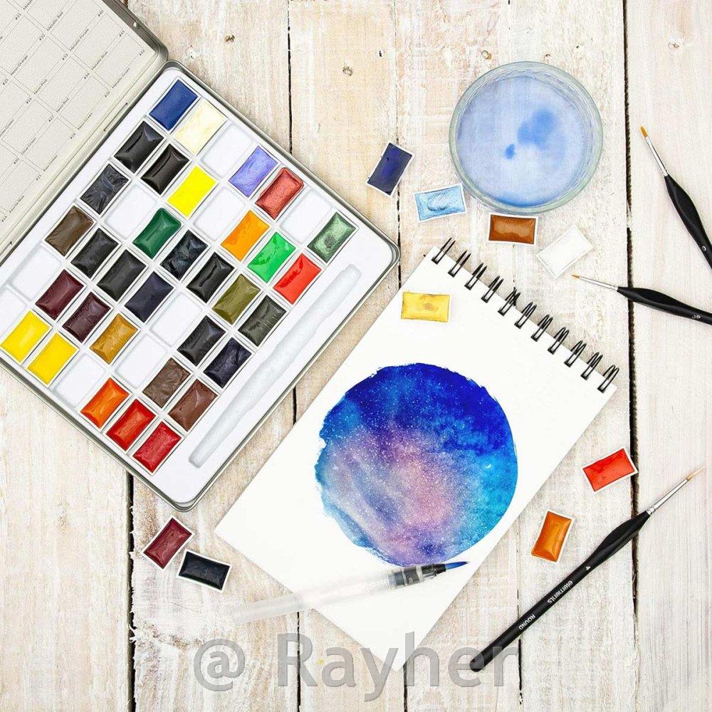 Set 42 bogato pigmentiranih, premium akvarelnih barv (celotne tablete).