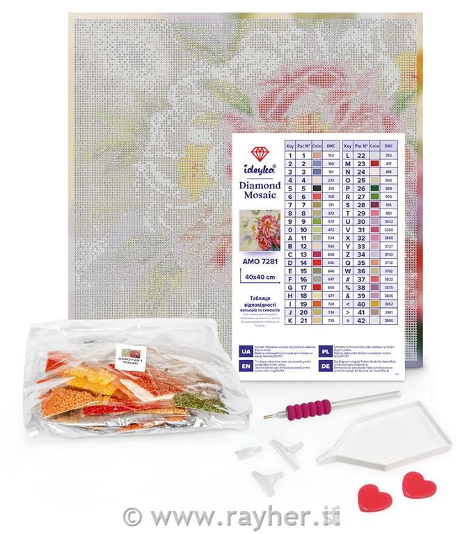 Izdelava dimanantnega mozaika (Diamond Painting) spodbuja ustvarjalnost, razvija domišljijo in nas uri v koncentraciji in potrpežljivosti na zabaven način. Zaradi načina izdelave mozaika, deluje proti stresno in pomirja. Set vsebuje: