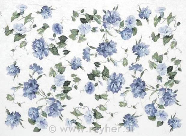 DECOUPAGE PAPIR RIŽEV A4, MODRE CVETLICE