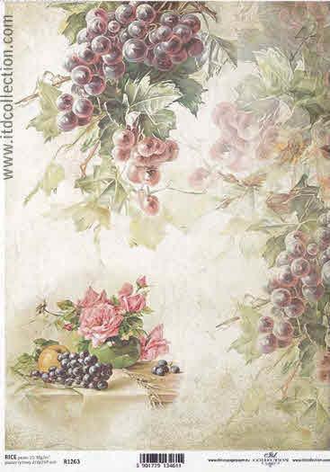CARTA DI RISO PER DECOUPAGE A4, UVA