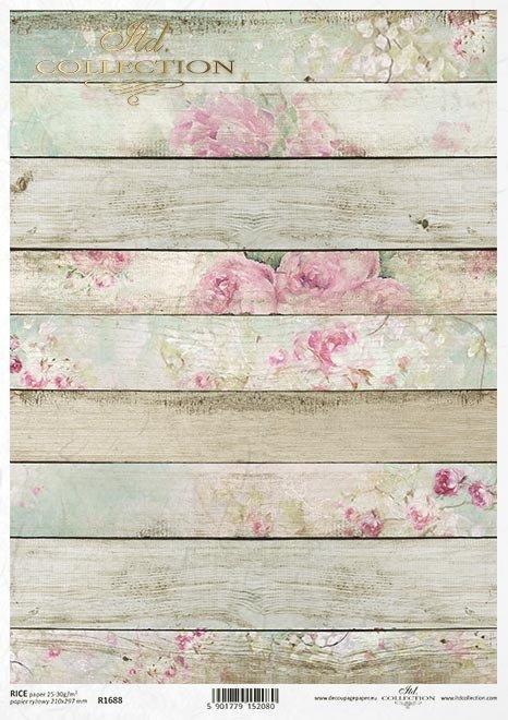 Decoupage papir, rižev A4, Vinatge deske in vrtnice