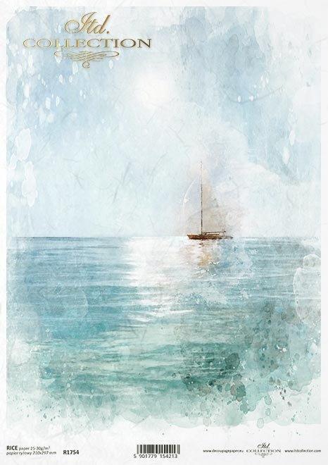 Decoupage papir, rižev A4, Jadrnica v daljavi
