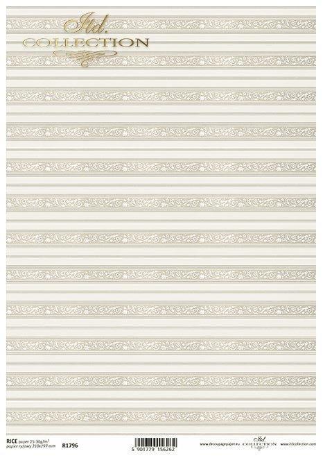 Najboljši papir za uporabo v tehniki decoupage. Zelo tanek in lahek - le približno 30 g / m2, polprozoren, naravno bel s potiskom. Vsebuje značilna, jasno vidna vlakna nepravilnega profila, razporejena v vseh smereh po celotni površini papirja, kar mu daje izviren videz in strukturo. Papir je nenavadno močan in trpežen, v rokah ne razpade. Na podlago (steklo, les, mdf, sveče, papmasche izdelki..) ga je enostavno lepiti s katerim koli lepilom za decoupage ali servietno tehniko. Med okrasitvijo zaobljenih predmetov ga je mogoče nekoliko podaljšati, ko je moker.