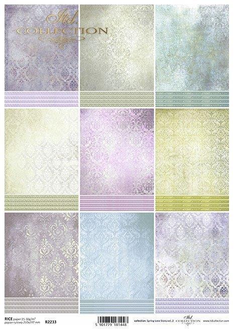 Najboljši papir za uporabo v tehniki decoupage. Zelo tanek in lahek - le približno 30 g / m2, polprozoren, naravno bel s potiskom. Vsebuje značilna, jasno vidna vlakna nepravilnega profila, razporejena v vseh smereh po celotni površini papirja, kar mu daje izviren videz in strukturo. Papir je nenavadno močan in trpežen, v rokah ne razpade. Na podlago (steklo, les, mdf, sveče, papmasche izdelki..) ga je enostavno lepiti s katerim koli lepilom za decoupage ali servietno tehniko. Med okrasitvijo zaobljenih predmetov ga je mogoče nekoliko podaljšati, ko je moker.