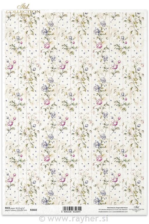 Najboljši papir za uporabo v tehniki decoupage. Zelo tanek in lahek - le približno 30 g / m2, polprozoren, naravno bel s potiskom. Vsebuje značilna, jasno vidna vlakna nepravilnega profila, razporejena v vseh smereh po celotni površini papirja, kar mu daje izviren videz in strukturo. Papir je nenavadno močan in trpežen, v rokah ne razpade. Na podlago (steklo, les, mdf, sveče, papmasche izdelki..) ga je enostavno lepiti s katerim koli lepilom za decoupage ali servietno tehniko. Med okrasitvijo zaobljenih predmetov ga je mogoče nekoliko podaljšati, ko je moker.