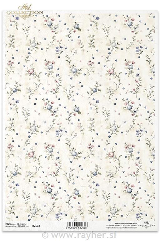 Najboljši papir za uporabo v tehniki decoupage. Zelo tanek in lahek - le približno 30 g / m2, polprozoren, naravno bel s potiskom. Vsebuje značilna, jasno vidna vlakna nepravilnega profila, razporejena v vseh smereh po celotni površini papirja, kar mu daje izviren videz in strukturo. Papir je nenavadno močan in trpežen, v rokah ne razpade. Na podlago (steklo, les, mdf, sveče, papmasche izdelki..) ga je enostavno lepiti s katerim koli lepilom za decoupage ali servietno tehniko. Med okrasitvijo zaobljenih predmetov ga je mogoče nekoliko podaljšati, ko je moker.