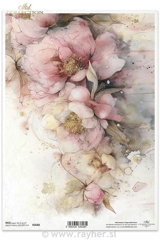 Najboljši papir za uporabo v tehniki decoupage. Zelo tanek in lahek - le približno 30 g / m2, polprozoren, naravno bel s potiskom. Vsebuje značilna, jasno vidna vlakna nepravilnega profila, razporejena v vseh smereh po celotni površini papirja, kar mu daje izviren videz in strukturo. Papir je nenavadno močan in trpežen, v rokah ne razpade. Na podlago (steklo, les, mdf, sveče, papmasche izdelki..) ga je enostavno lepiti s katerim koli lepilom za decoupage ali servietno tehniko. Med okrasitvijo zaobljenih predmetov ga je mogoče nekoliko podaljšati, ko je moker.