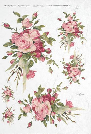CARTA DI RISO PER DECOUPAGE A4, MAZZI GIARDINO ROSA