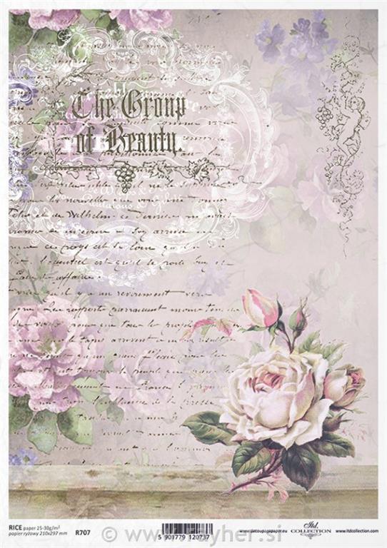 CARTA DI RISO PER DECOUPAGE A4, ROSE VINTAGE