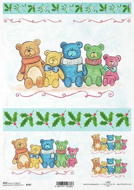 DECOUPAGE PAPIR RIŽEV A4,MEDVEDKI S ŠALI