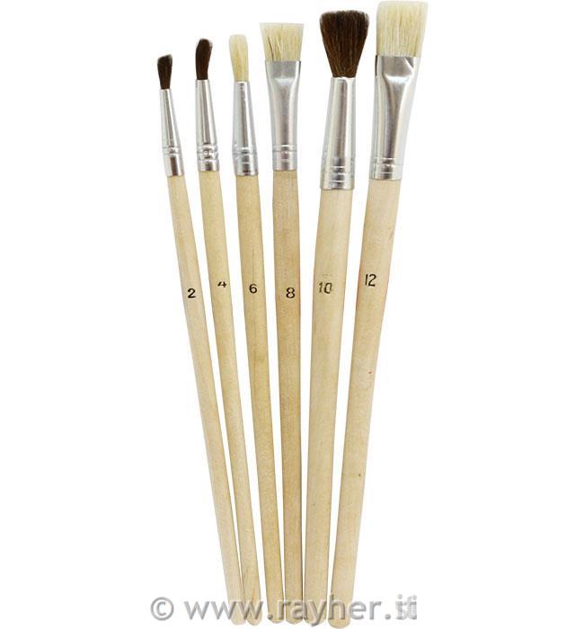 Čopiči, set 6, za olja in akvarele, 3 okrogli, 3 ploščati