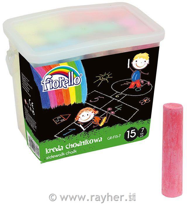 Gessetti per asfalto, assortiti, Lunghi 10,5 cm, 15 pz, 7 colori div.,box blister