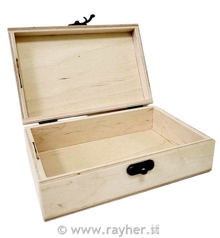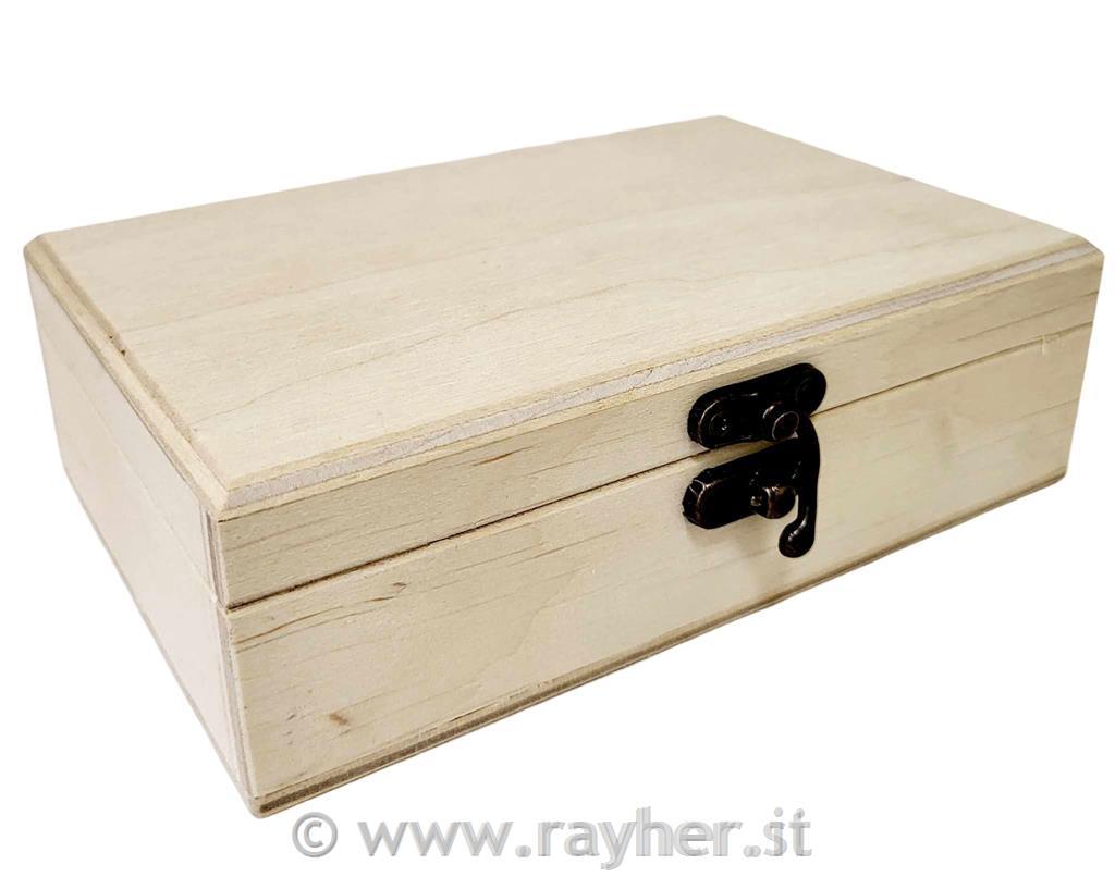 Visoko kakovostna lesena škatla izdelana v EU s kovinskim zapiralom.