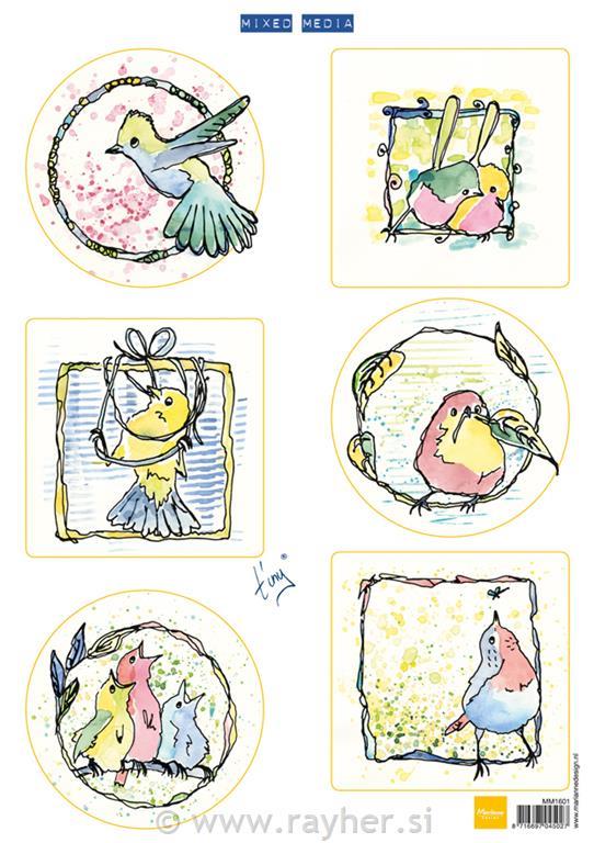 LIST S SLIČICAMI, BARVNI PTIČKI