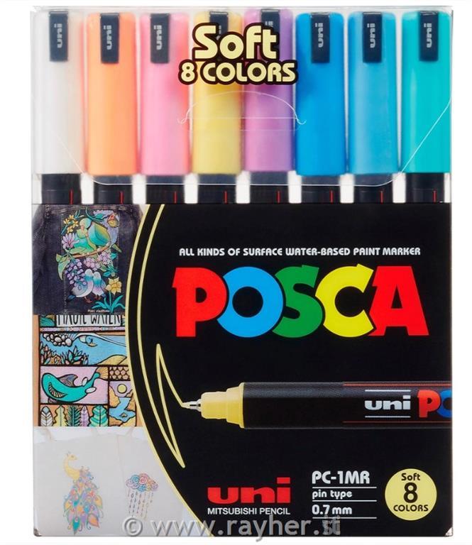Uni POSCA markers 1MR Soft set 8;; tip 0,7 mm metal