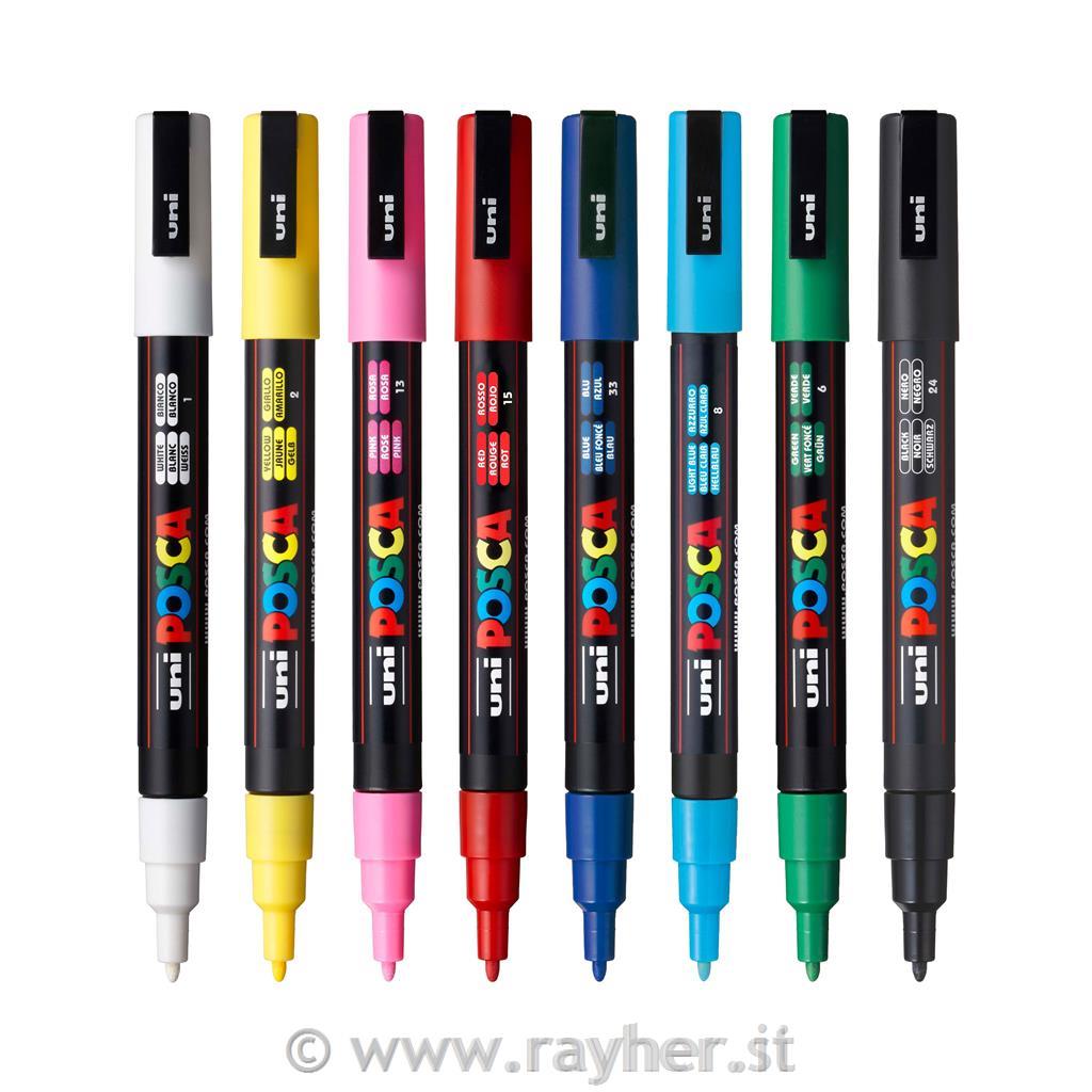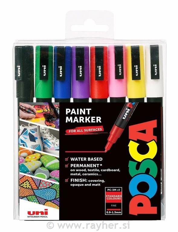 POSCA Uni flomastri 3M Basic set 8; konica 0,9-1,3 mm