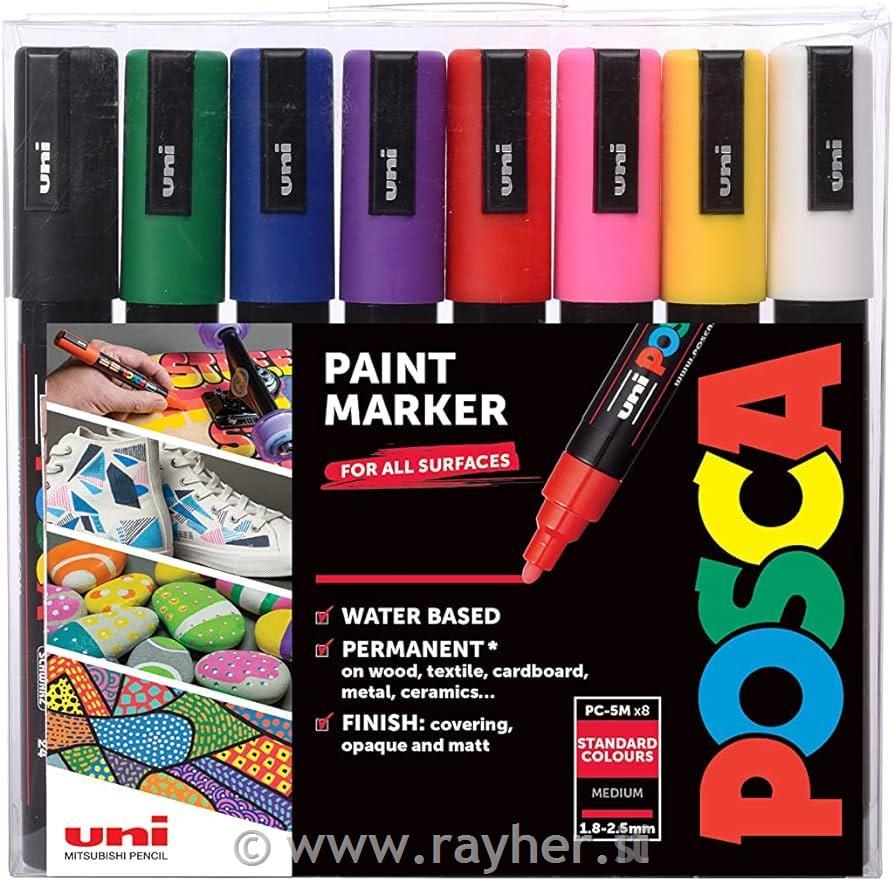 Uni POSCA markers 5M set 8 Basic;; tip 1,8-2,5 mm