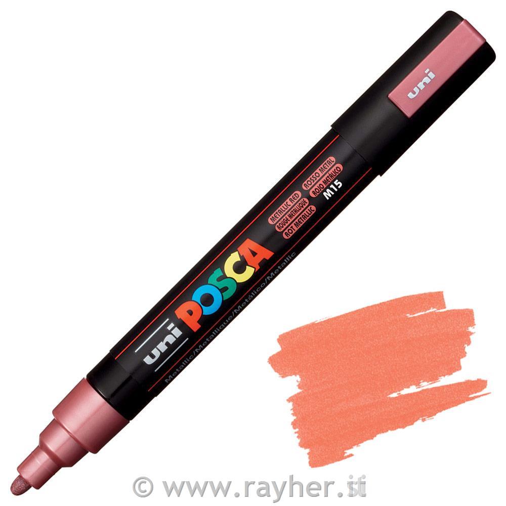POSCA Uni flomaster; konica 1,8-2,5 mm; kovinsko rdeč