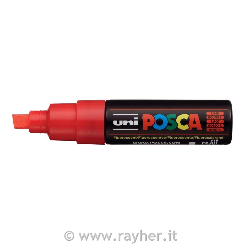 POSCA Uni flomaster; konica 8 mm prirezana; fluo rdeč