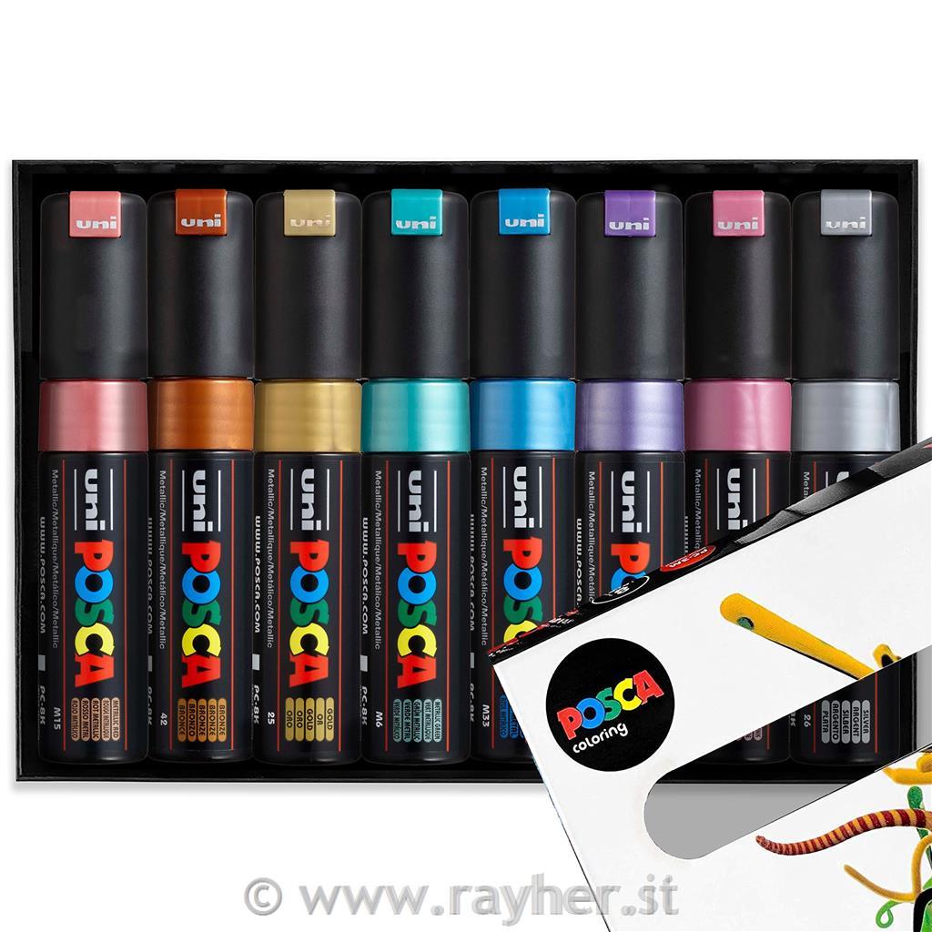POSCA Uni flomastri 8K set 8 Metallic; konica 8 mm prirezana
