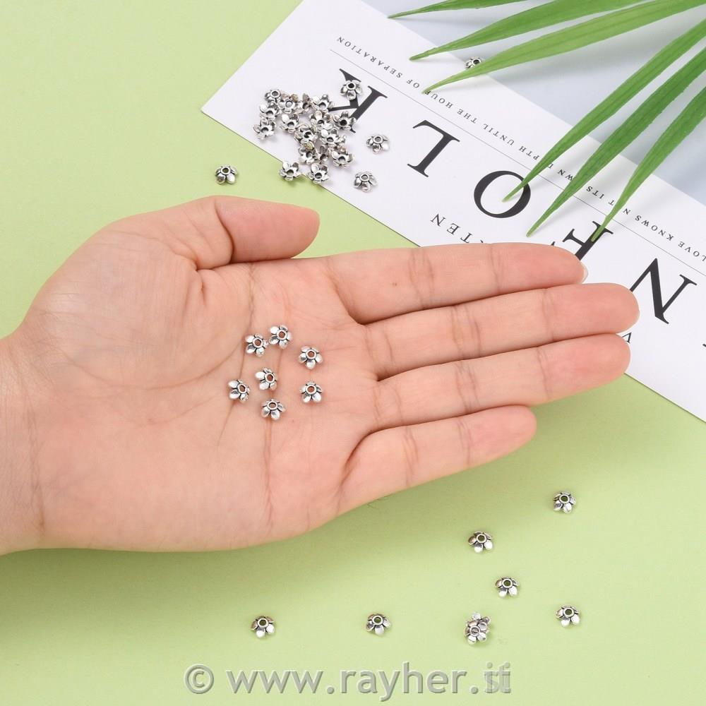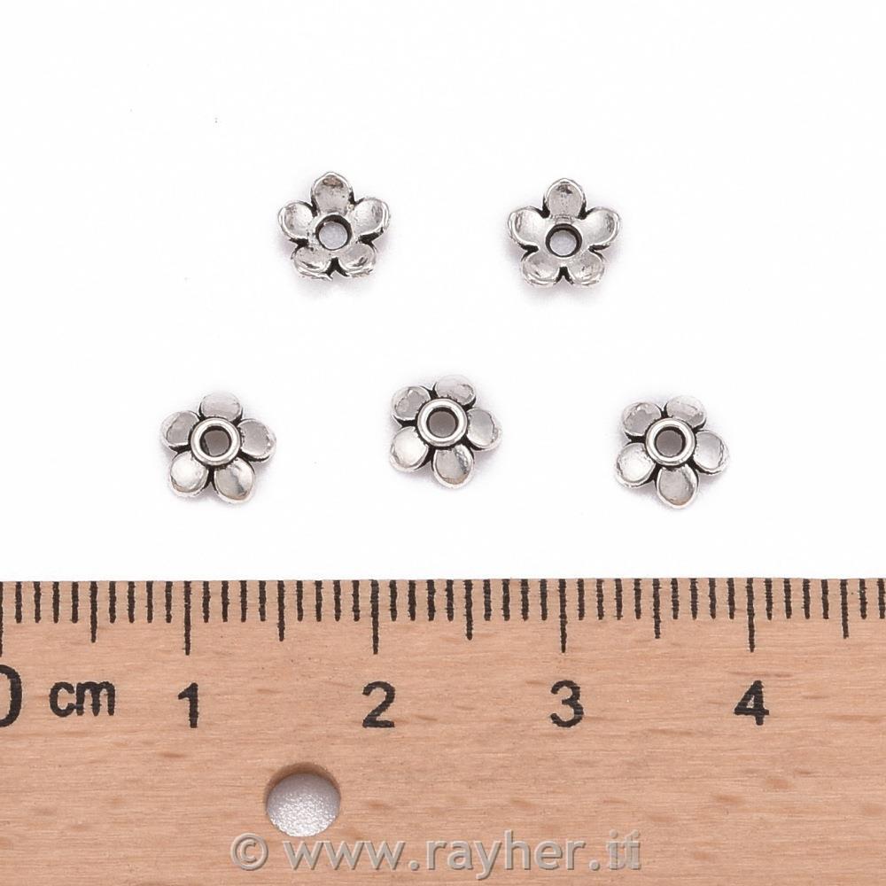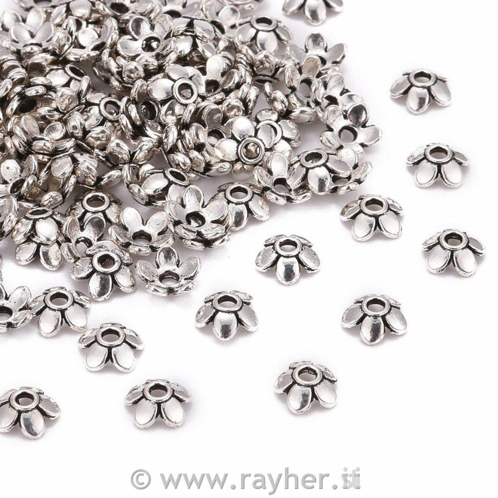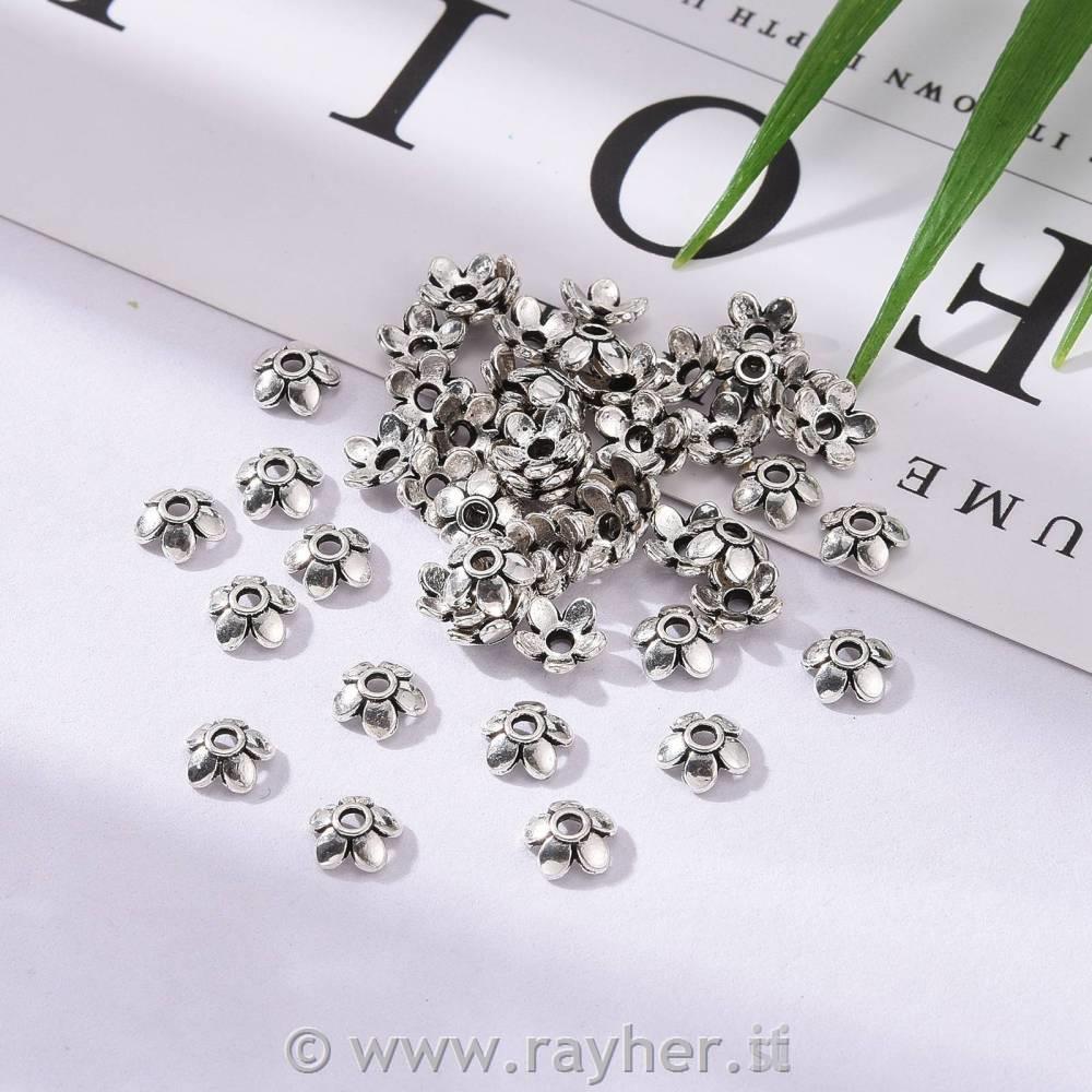 Tibetanske srebrne kapice za perle, brez svinca in kadmija, rožice, starinsko srebro.