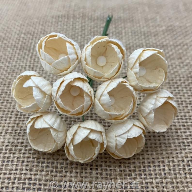 Cvetovi Buttercups, krem, set 10, 25mm