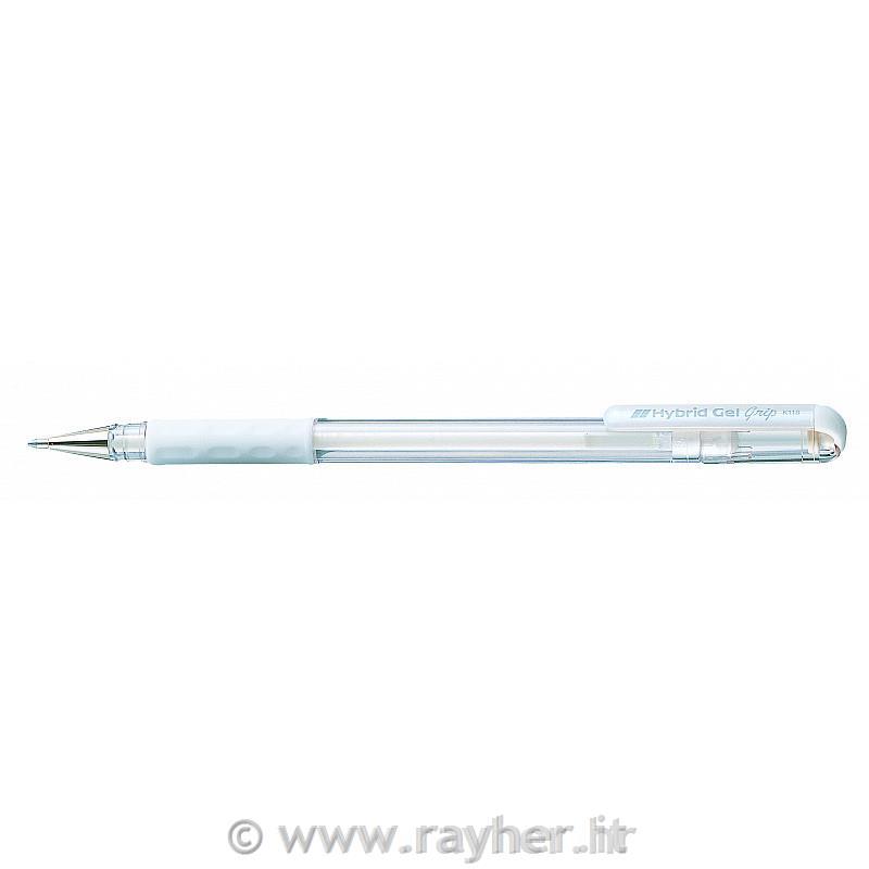 Pentel hybrid gel grip s srednjo konico debeline 0,8 mm. Črnilo v kovinski barvi je vidno ne le na belem, ampak tudi na temnem papirju. Vodoodporna mina in odporna proti bledenju. Primerno za okrasno pisanje.