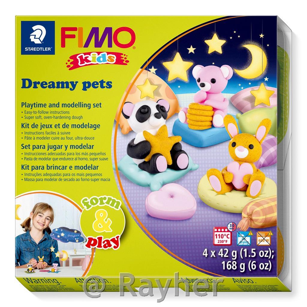 FIMO Kids set Sanjski ljubljenčki 4x42g, modelirka, navodila, scena