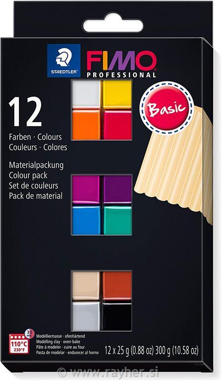 FIMO Professional set Basic vsebuje 12x maso , vsaka po 25g.