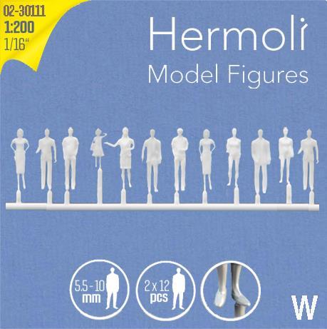 Figure in piedi 1:200 h=9 mmBianche, 12 motivi; 24x