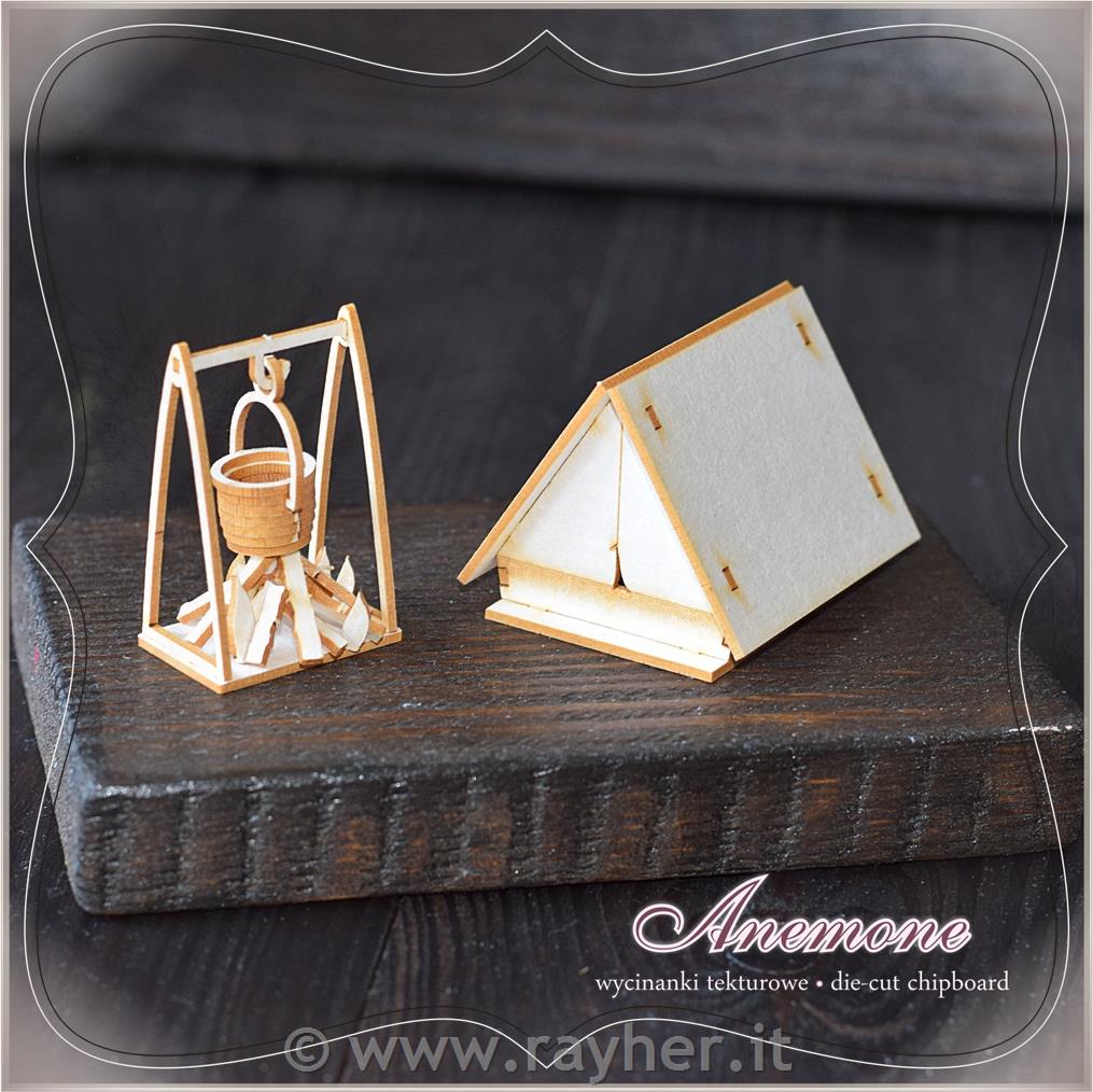 dim.:Šotor - 4,0x4,0x5,3cm, ognjišče - 4,7x2,0x3,0cm