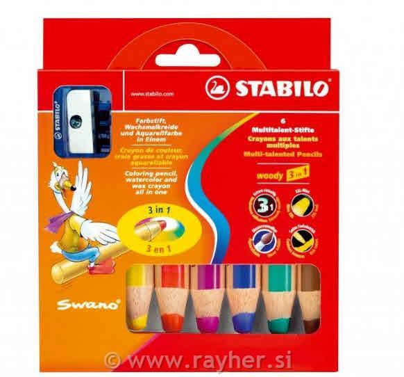 Barvica, voščenka in akvarel – vse to je združeno v Woody barvici. Izjemna debelina barvice je primerna za otroške roke, konice pa skorajda ni mogoče zlomiti. Primerna za risanje na papir, karton, steklo, kovino, usnje in ostale gladke površine. Če nanjo s čopičem nanesemo vodo, se barve med seboj lepo zlijejo med sabo. Prav tako jo je enostavno odstraniti z oblačil in hišnega tekstila.