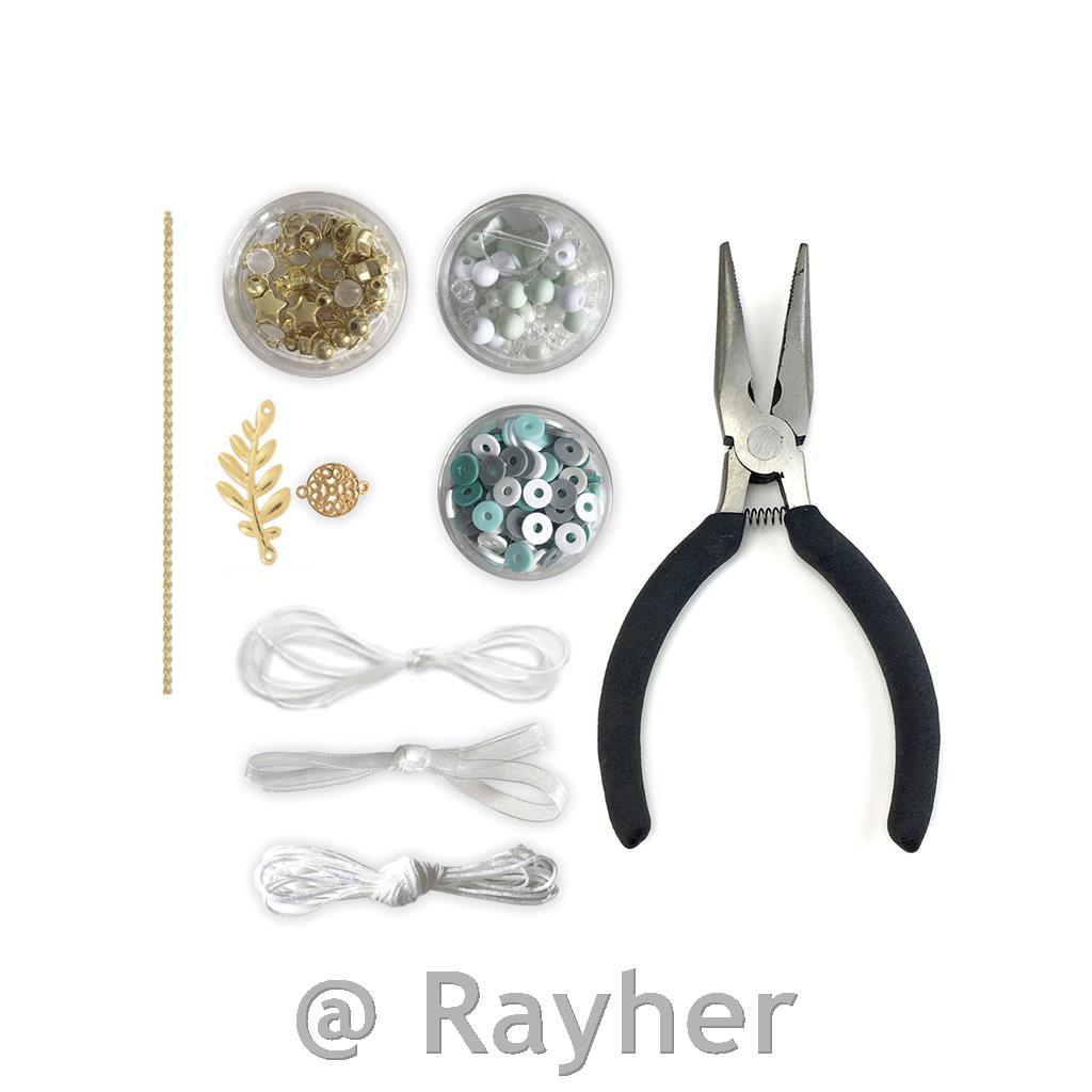 Il set contiene: cordino bianco, catenina, perline assortite, ciondoli, 10 chiusure, 30 anelli, pinze per bigiotteria, sacchetto in organza e istruzioni illustrate con modelli. Ogni modello e dotato di etichette; la legenda delle etichette con le istruzioni illustrate si trova a pagina 3.