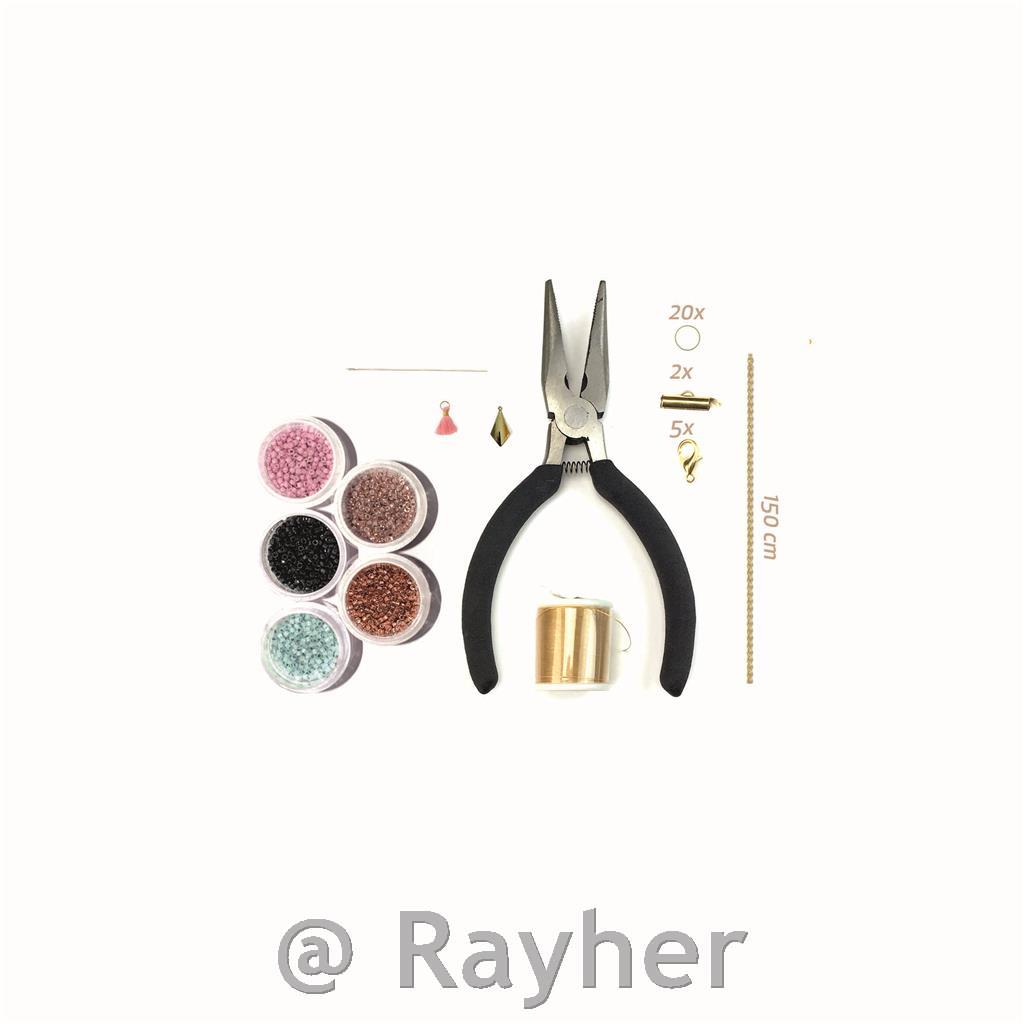 delce za nakit, vrvice, klešče, šivanka, verižica, knjižica s slikovnimi navodili.