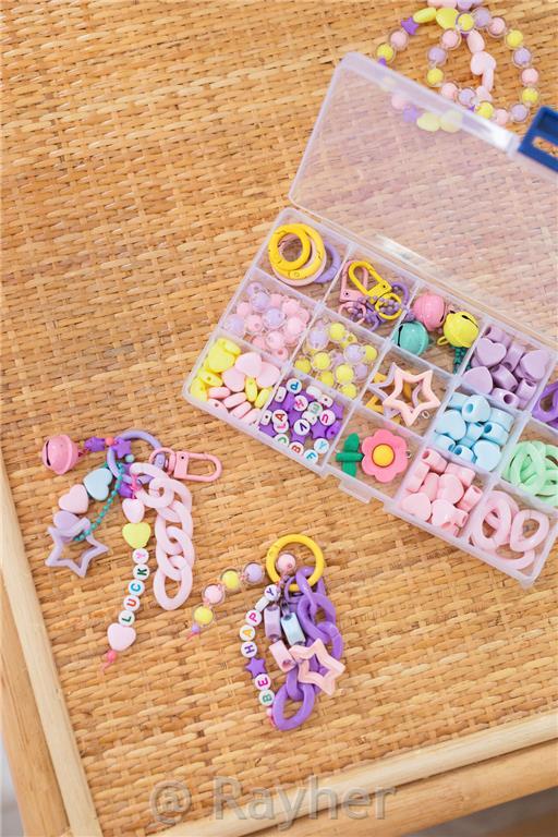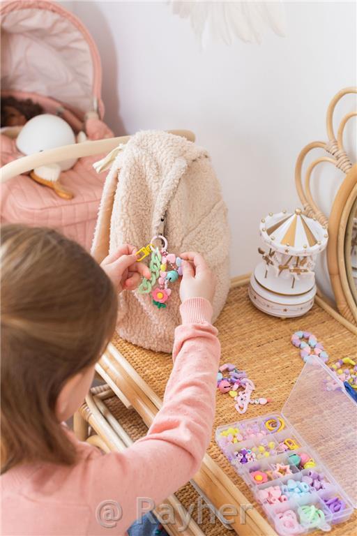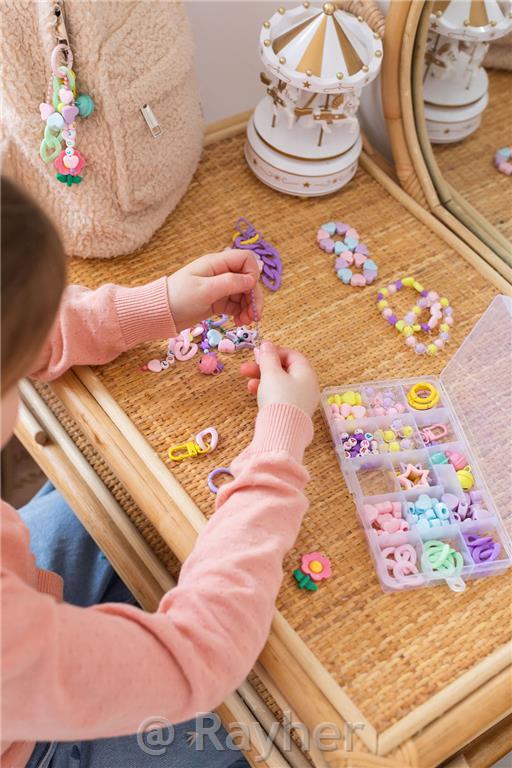 Contiene: perline XL con chiusura a scatto, chiusura, perline con lettere, campanellino, ciondolo maxi, perline a forma di cuore e un libretto con istruzioni illustrate. Consigliato per bambini dai 7 anni in su.