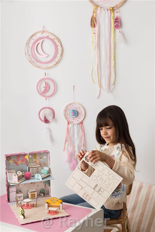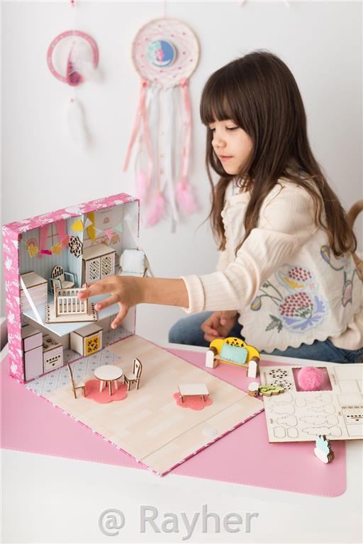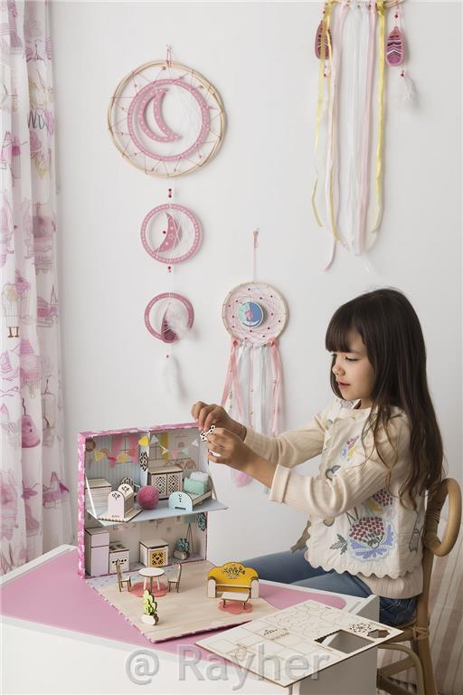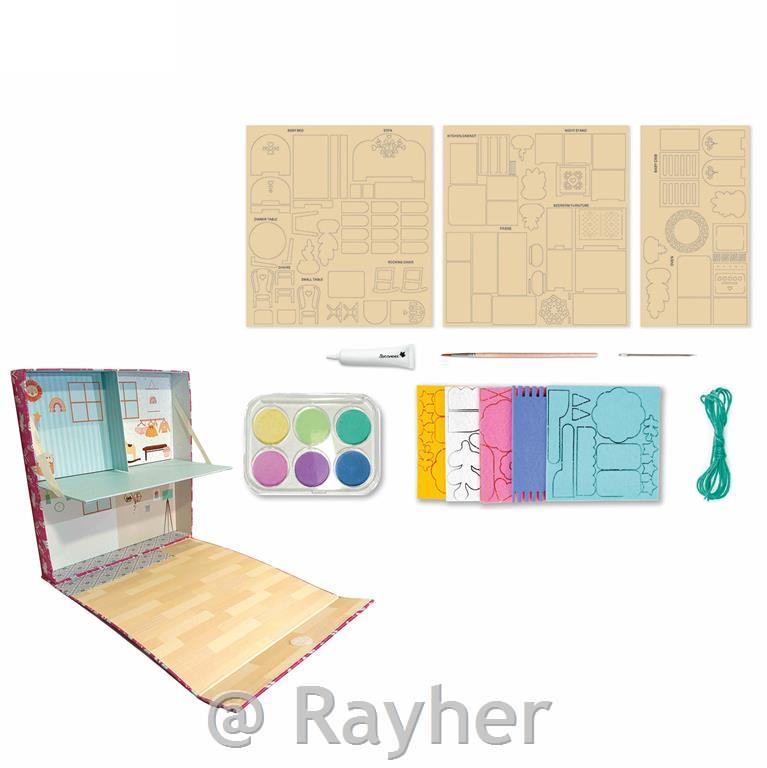 Assemble the wooden furniture, paint it if you wish, and complete the decoration by sewing little cushions, garlands... bring to life a cozy interior straight from your imagination!
